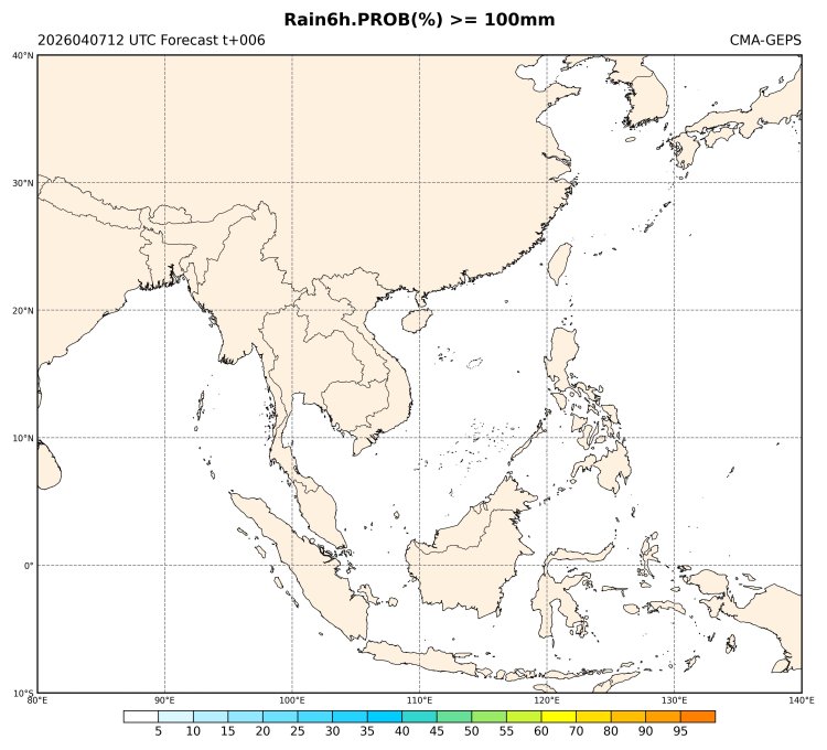 Precip >= 100. mm/6H prob(shad)
